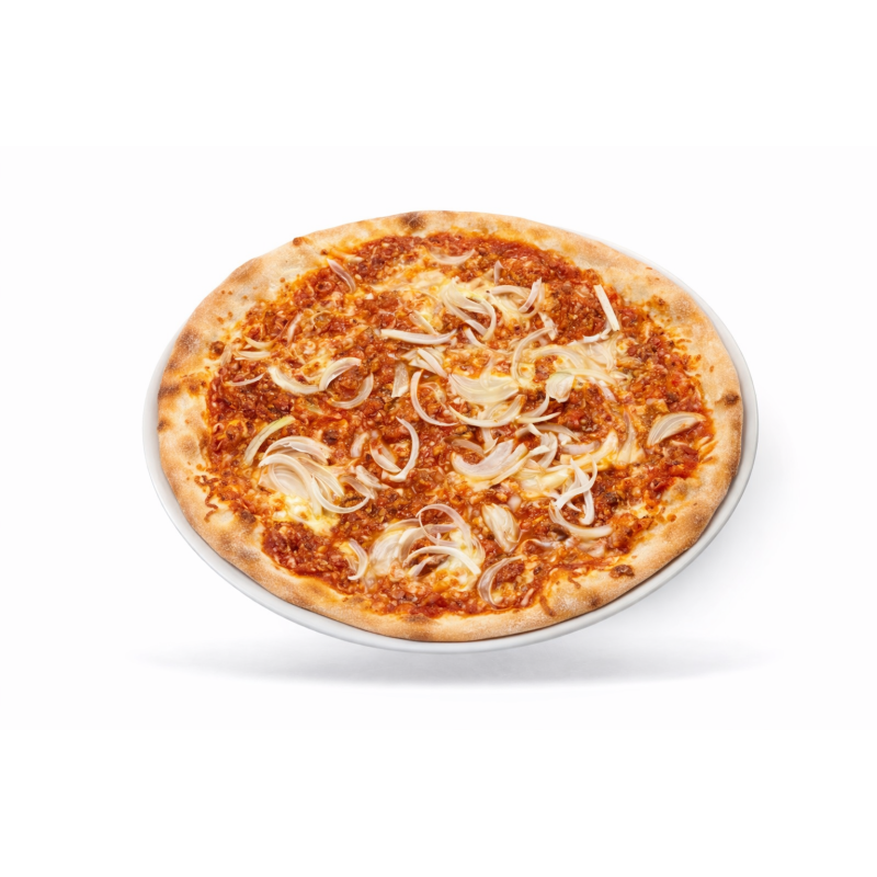 Rajčatová omáčka, mozzarella, boloňské ragú, cibule
